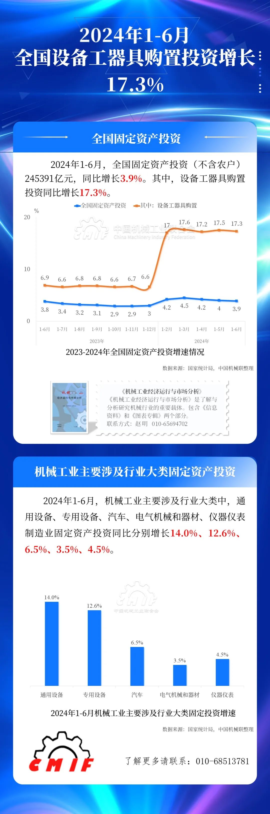 2024年1-6月全国设备工器具购置投资增长17.3%